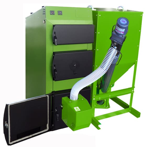 - Двухшнековая система подачи пеллет;
